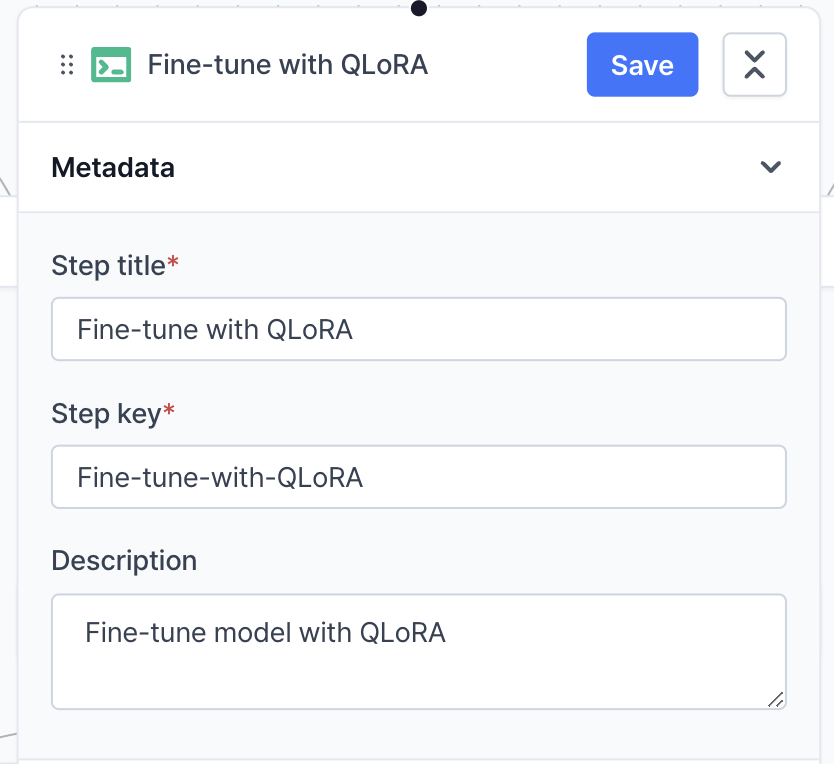 The Run step in your list indeed shares similarities with VESSL Run, as both involve creating a container and executing specific commands or code within that environment. However, the run step in the pipeline context is tailored specifically for automation, allowing it to seamlessly integrate with other steps and facilitate streamlined, repetitive tasks. A run step is composed of the following sections:Metadata