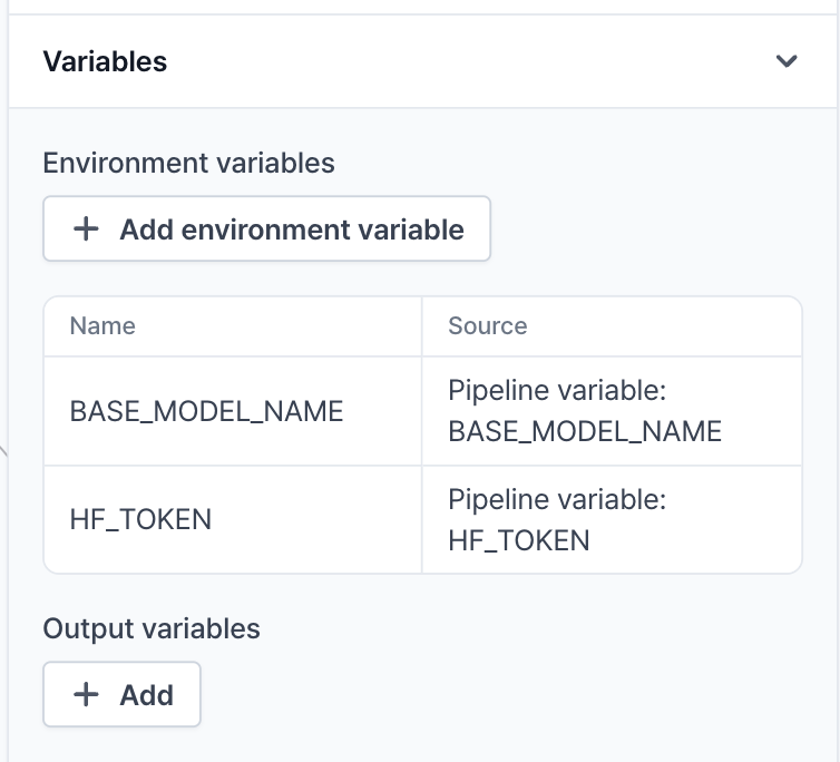 - Output variables: The output variables that will be generated from the container. You can export the output variables on the code executed in the container using VESSL SDK like below: