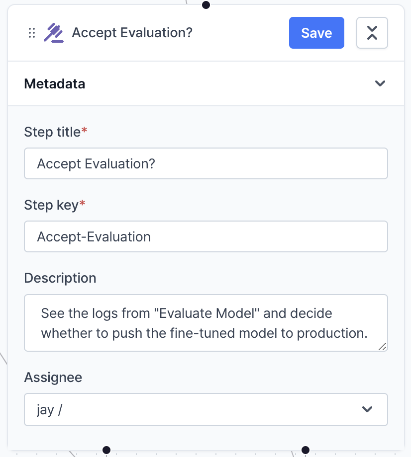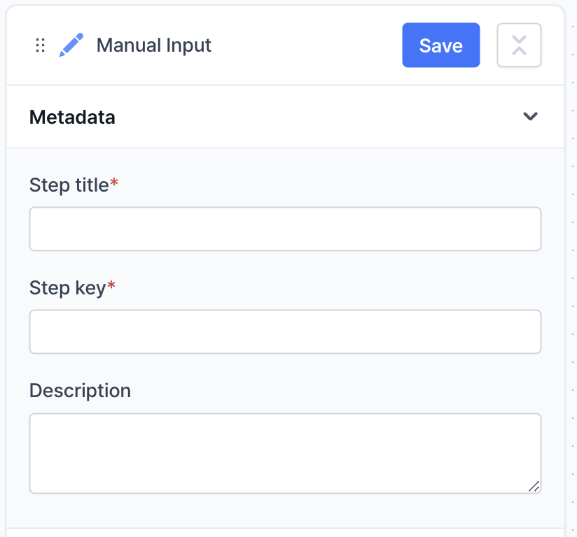 The Manual Input step is used to receive input from the user and define variables to use in the pipeline execution. It is often used to define hyperparameters, dataset paths, or any other variables that need to be defined manually.Metadata