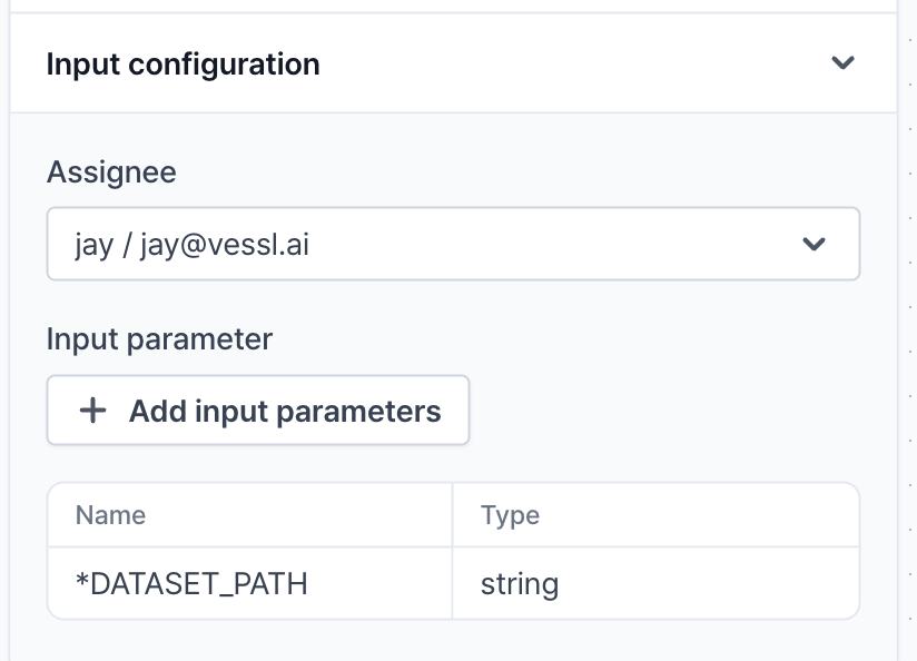 - Assignee: The user who will be assigned to define the input variables. It can be reassigned during the pipeline execution.