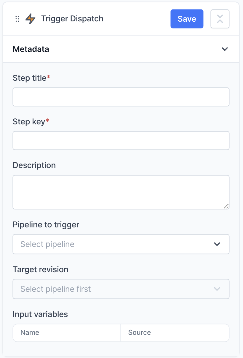 | Trigger Dispatch | Execute another pipeline in the project. |