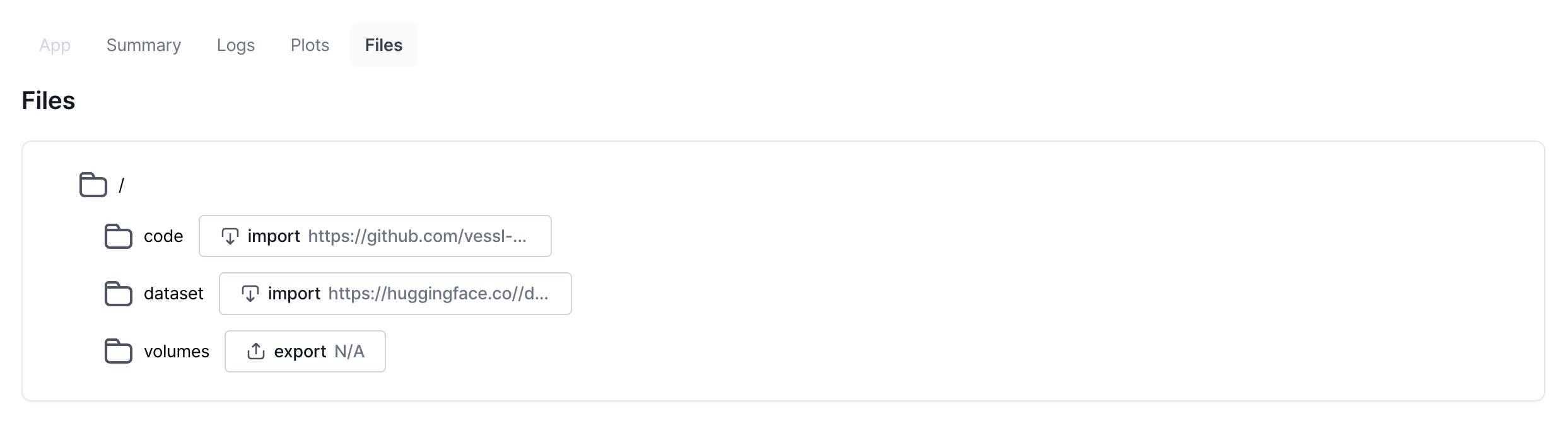 The files tab guides you to navigate and download the output and input files. You can also do this using VESSL Client CLI.